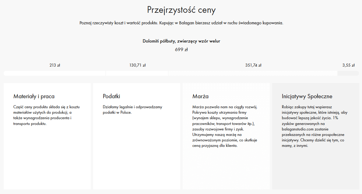 Przykład UVP (promowanie transparentności i Fair Trade) marki BALAGAN (źródło: balaganstudio.com/pl/)