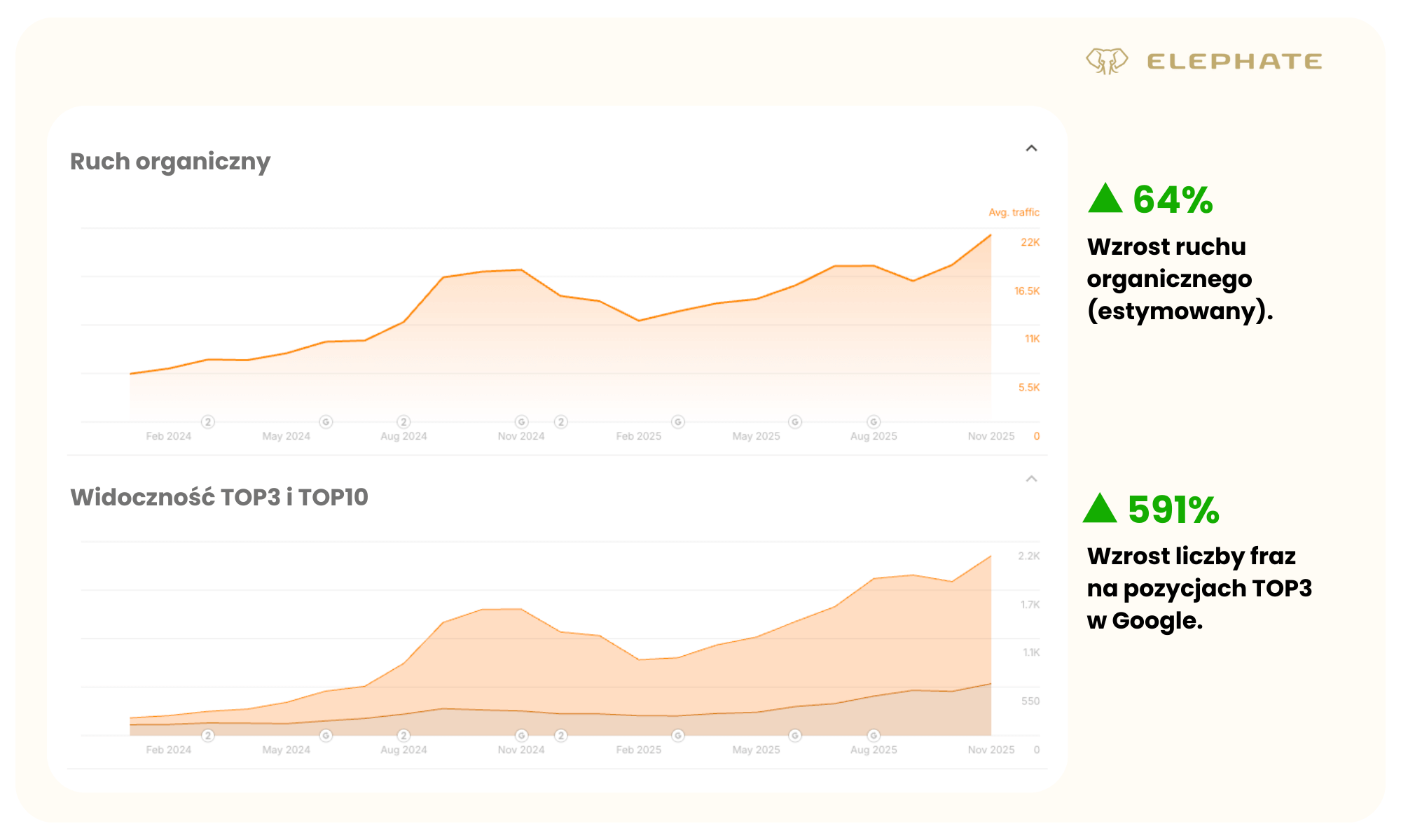 We współpracy z Elephate szczególnie doceniamy to, że przekazywana wiedza nie ograniczała się do podstawowych informacji możliwych do znalezienia w standardowych poradnikach SEO.
