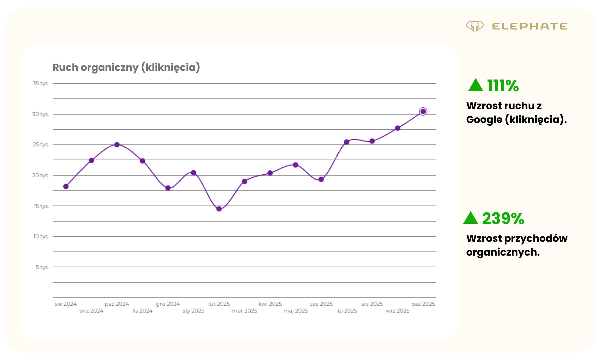 - Ruch organiczny z Google w tym czasie (kliknięcia) zwiększył się o 111% r/r. ✅