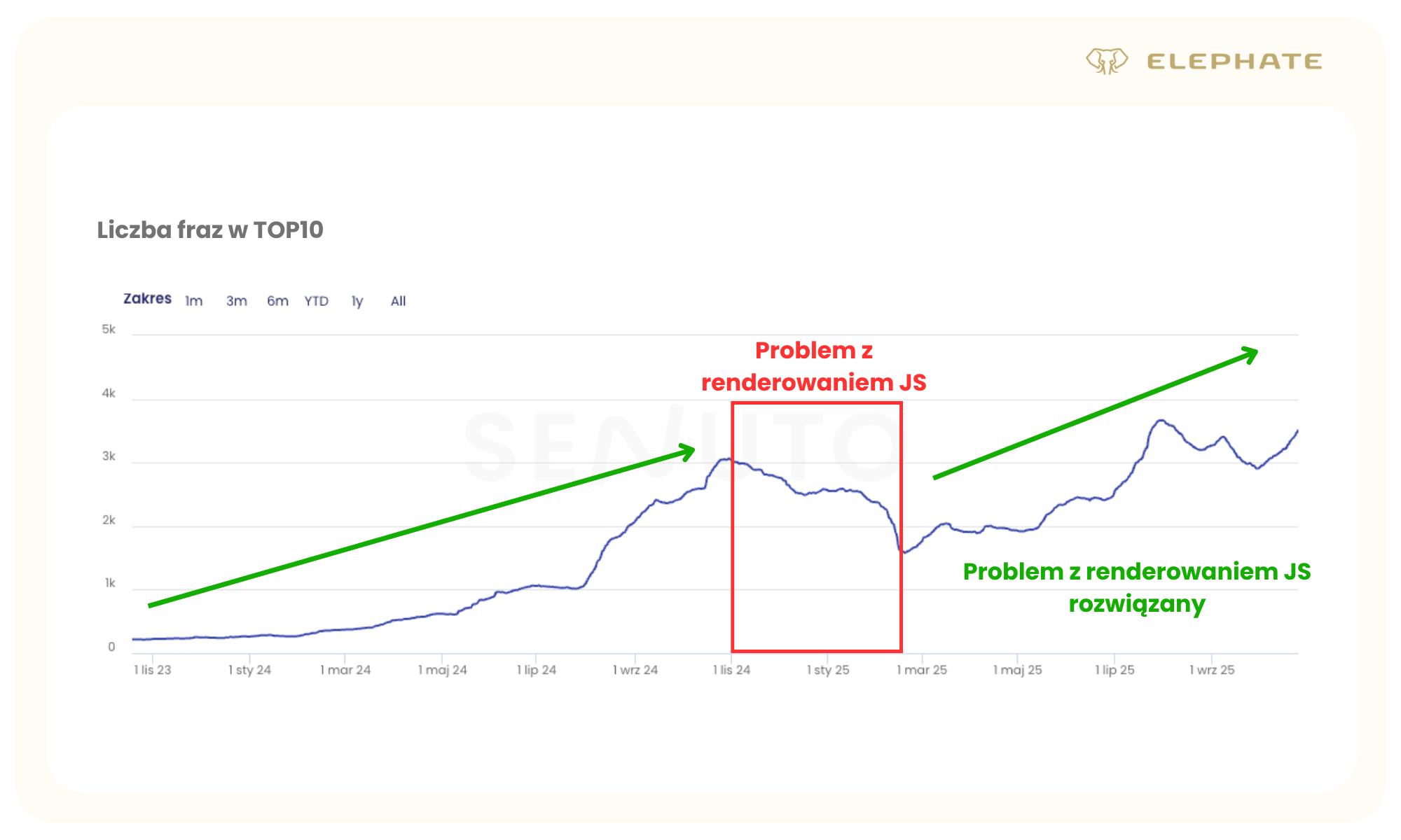 - Ta zmiana natychmiast zatrzymała spadkowy trend i otworzyła furtkę do dalszych wzrostów SEO.