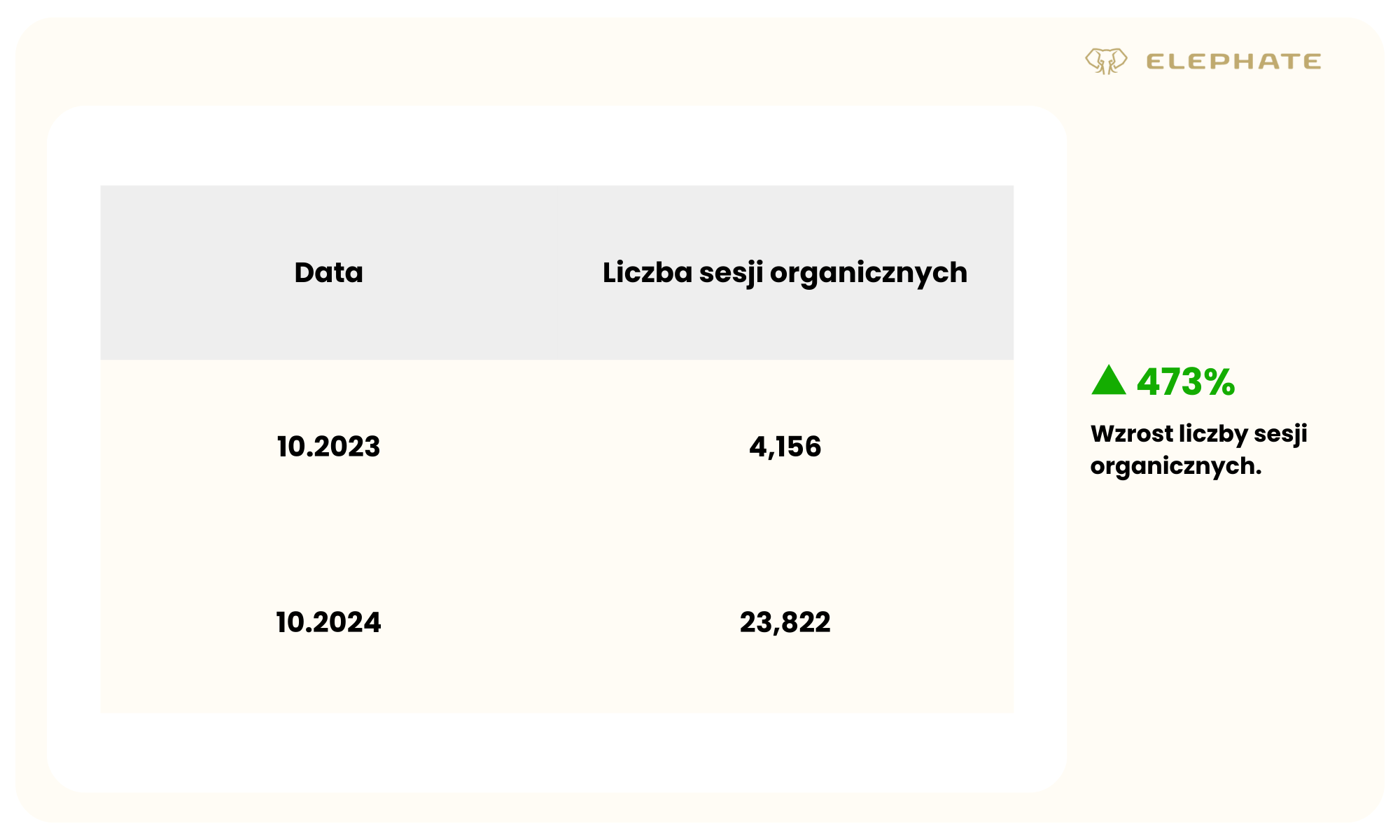 - Zwiększyliśmy liczbę sesji organicznych o 473% r/r. ✅